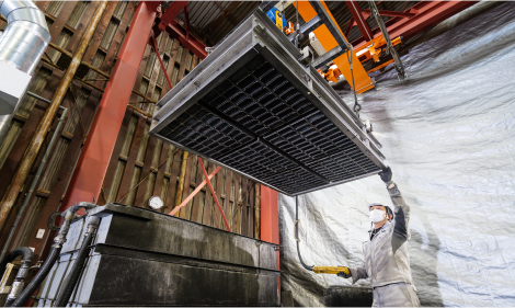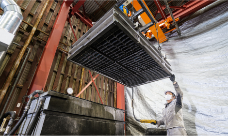 高速道路トンネル内部の排ガス浄化システムで使われる、大型フィルターの洗浄を承っております。フィルターで吸着・捕集した自動車排ガスに含まれる粉塵などを水流で洗い流し、再び利用可能な状態に。重量のあるもの、大型や長物のフィルターも対応可能です。