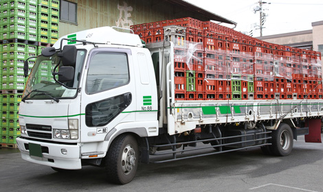 3トン・4トン、8トンのトラックを装備し、自社でビンを回収しています。長年の歴史の中で築いた圧倒的な回収力で、シーズンを問わず豊富な物量を維持。一年を通じて、お客様に大量のビンを安定供給できます。そのため、お客様は自社倉庫のストックを抑えつつ、当社に必要な量を都度ご発注いただく事も可能です。